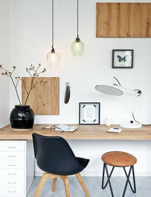 北歐風(fēng)工作臺(tái):清新的淺色原木系桌子搭配可心的綠植,簡(jiǎn)單舒適,在這樣的環(huán)境中工作,整個(gè)心情都明朗起來(lái)。