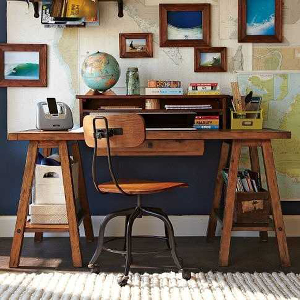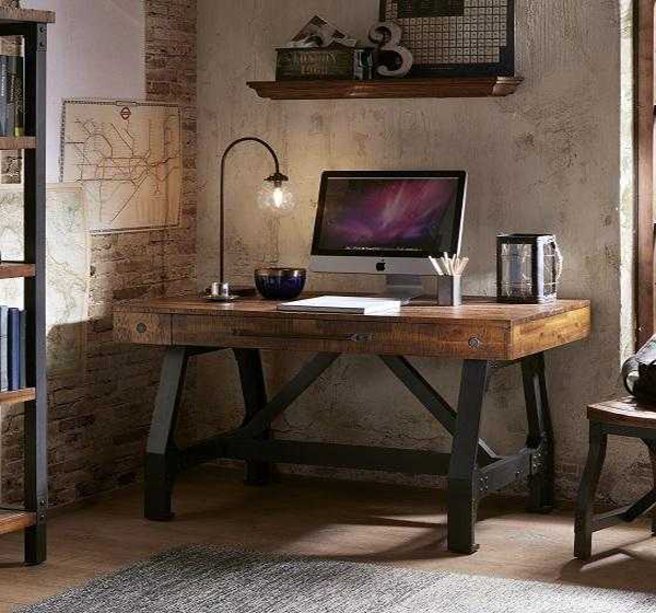 工業(yè)風(fēng)工作臺(tái):厚重或做舊處理的實(shí)木桌椅搭配適量的鐵藝元素,整個(gè)空間更顯硬朗,有種返璞歸真的敦厚和寧?kù)o。