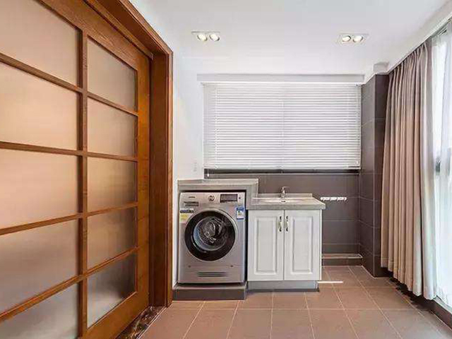 大多數(shù)家庭都會把洗衣機(jī)放陽臺,單單放一個洗衣機(jī)在陽臺角落,或許有人會覺得占位置不實用,那不妨加裝一個陽臺洗衣機(jī)柜,既能放洗衣機(jī),又能擠出一些收納空間,一舉兩得。如下圖: