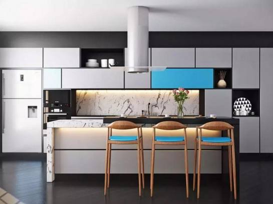 藍(lán)與白的結(jié)合,猶如西班牙蔚藍(lán)色的海岸與白色沙灘;希臘的白色村莊,在碧海藍(lán)天下,簡直是制造夢幻的絕佳搭配。用在廚房中,凸顯雅致和清新。