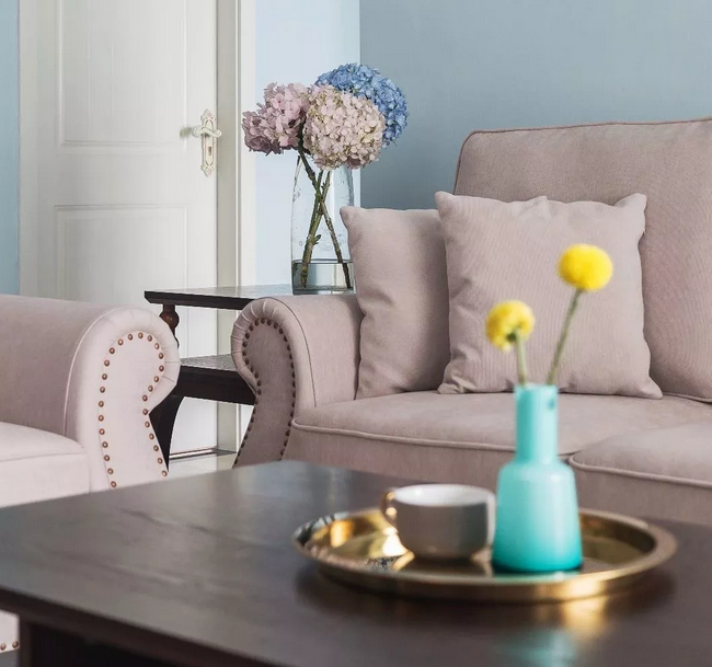▲整個開放區(qū)域的墻面都以淡藍色刷新,簡單卻又透著一股自然清新的氣息。一套舒適精致的現(xiàn)代美式布藝沙發(fā),布置在這個寬松的客廳里,顯得格外的舒適自然。