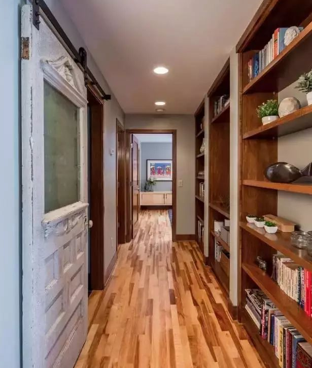 寬度足夠的情況下,在走廊家裝小書柜,就可以把走廊改造成小型書房。喜歡看書買書的你再也用擔心書籍堆滿地。走廊書房,隨手就可以拿起想看的一本書。