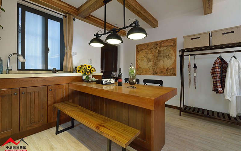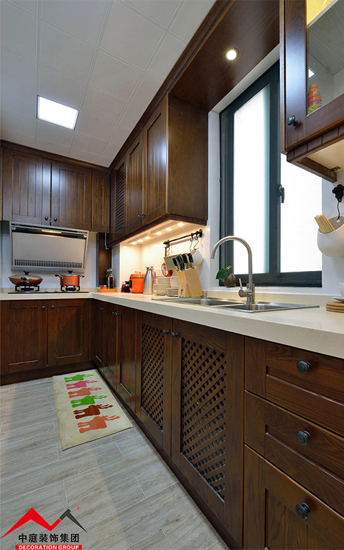 廚房繼續(xù)延續(xù)整個空間的輕美式風(fēng)格,木制門板造型精致美觀典雅,讓人賞心悅目!在這樣美的空間為一家人準(zhǔn)備餐點,難道不是一種享受嗎?