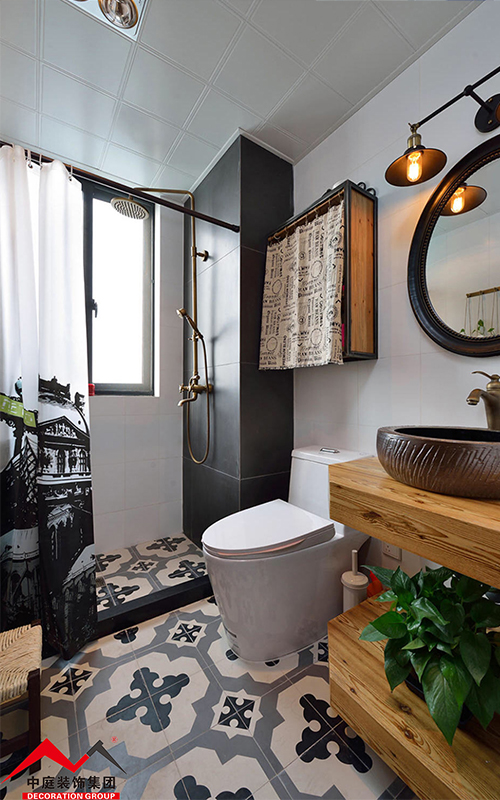 衛(wèi)生間寬闊凈朗,面盆別有一番特色,墻邊放置的小立柜既能收納也能放置裝飾畫,整個浴室藝術(shù)感滿滿。