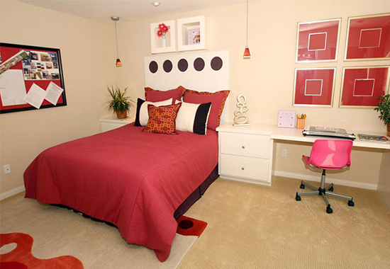 中國(guó)人認(rèn)為紅色是吉祥色,新婚的喜房就都是滿(mǎn)眼紅彤彤的。紅色還具有熱情、奔放的含義,充滿(mǎn)燃燒的力量。但居室內(nèi)紅色過(guò)多會(huì)讓眼睛負(fù)擔(dān)過(guò)重,產(chǎn)生頭暈?zāi)垦5母杏X(jué),即使是新婚,也不能長(zhǎng)時(shí)間讓房間處于紅色的主調(diào)下。建議選擇紅色在軟裝飾上使用,比如窗簾、床品、靠包等,而用淡淡的米色或清新的白色搭配,可以使人神清氣爽,更能突出紅色的喜慶氣氛。