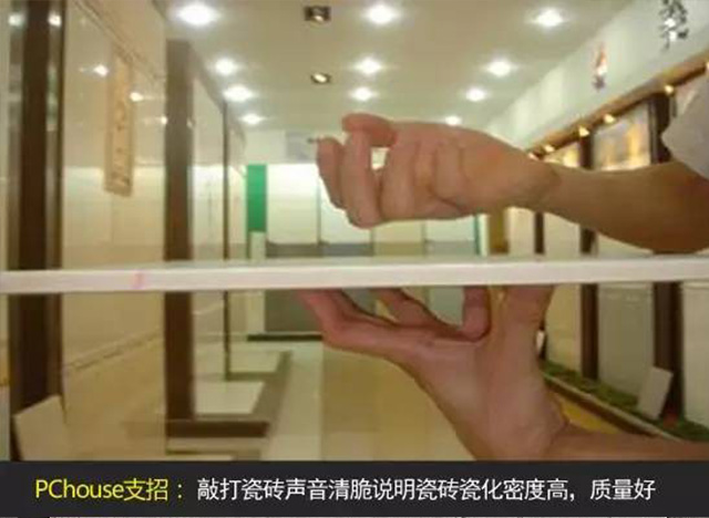 敲打瓷磚,聽(tīng)聲辨密度。選擇瓷磚最重要的是考慮質(zhì)量問(wèn)題,辨別瓷磚好壞有很多標(biāo)準(zhǔn),可以進(jìn)行敲打,聲音清脆說(shuō)明瓷磚瓷化密度高,質(zhì)量好。