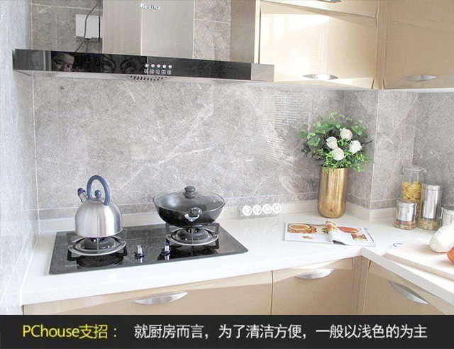 比如廚房一般來(lái)說(shuō),為了清潔方便,一般以淺色的為主,最常見(jiàn)的白色的瓷磚。