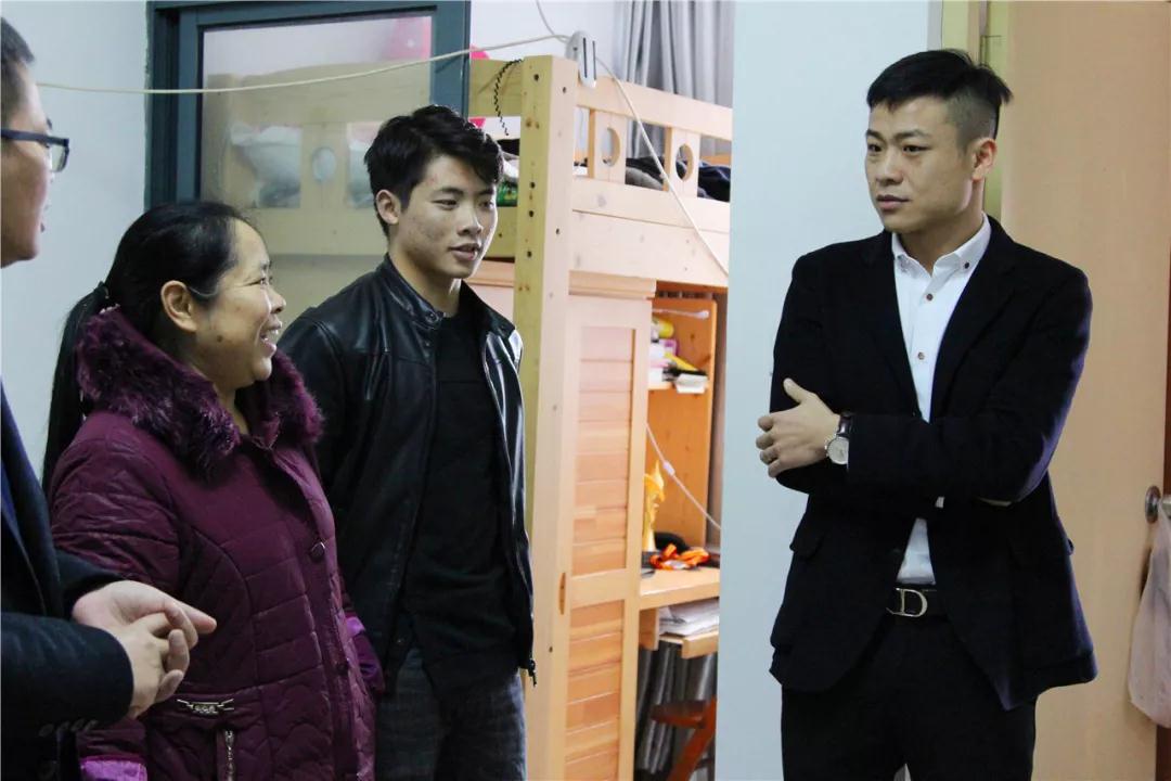 ▲集團(tuán)副總裁湯炬峰先生和家屬交流日常生活情況