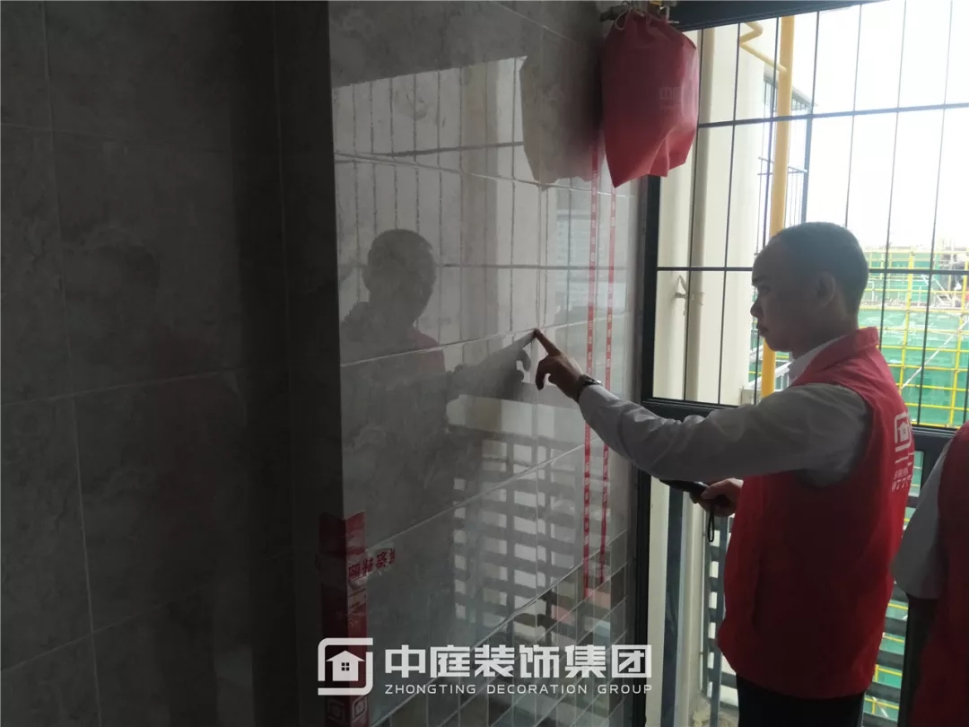 檢查瓷磚鋪貼是否平整干凈,有無錯貼漏貼