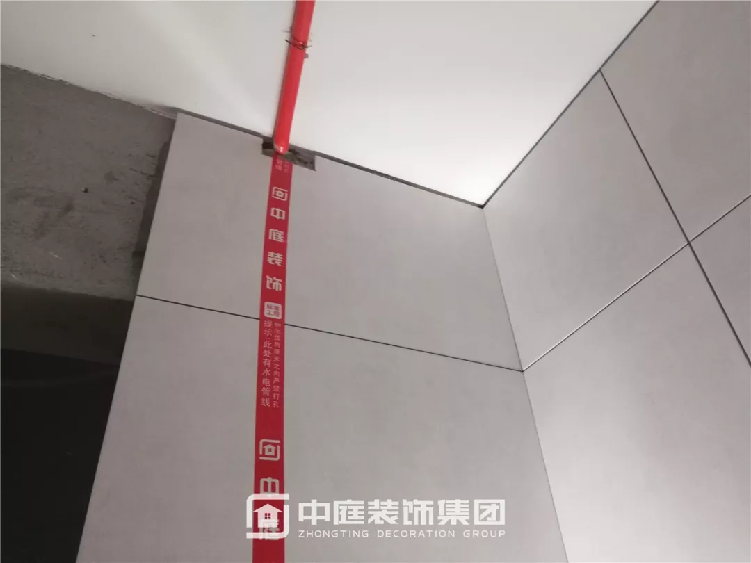 瓷磚鋪貼后做水電標識,避免后期成品安裝打孔破壞水電線管;同時對瓷磚陽角進行保護,以免搬運材料時磕碰。