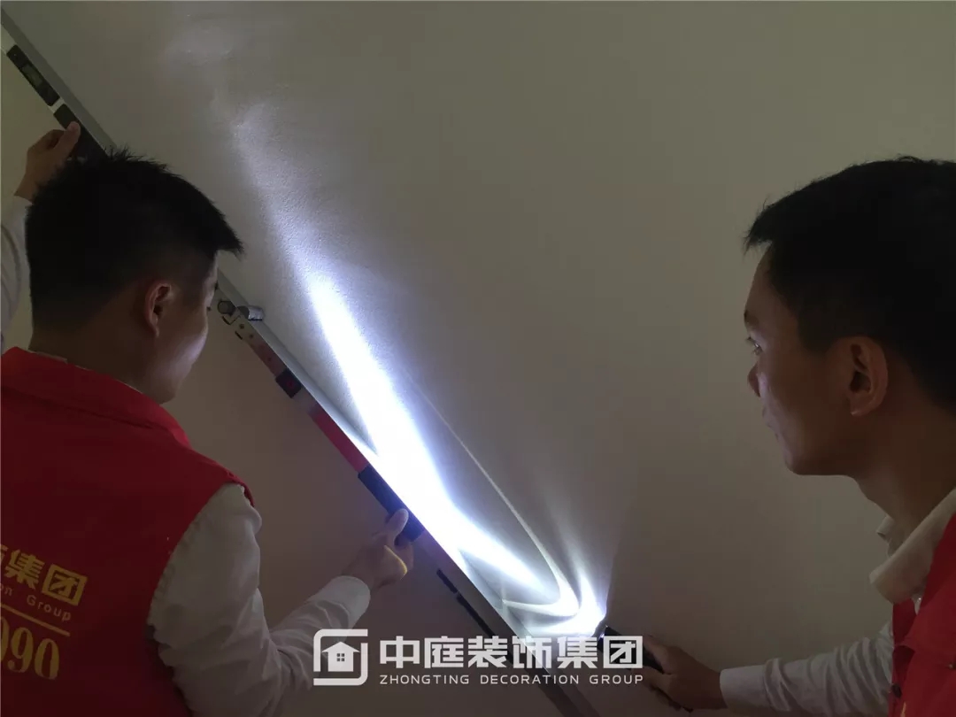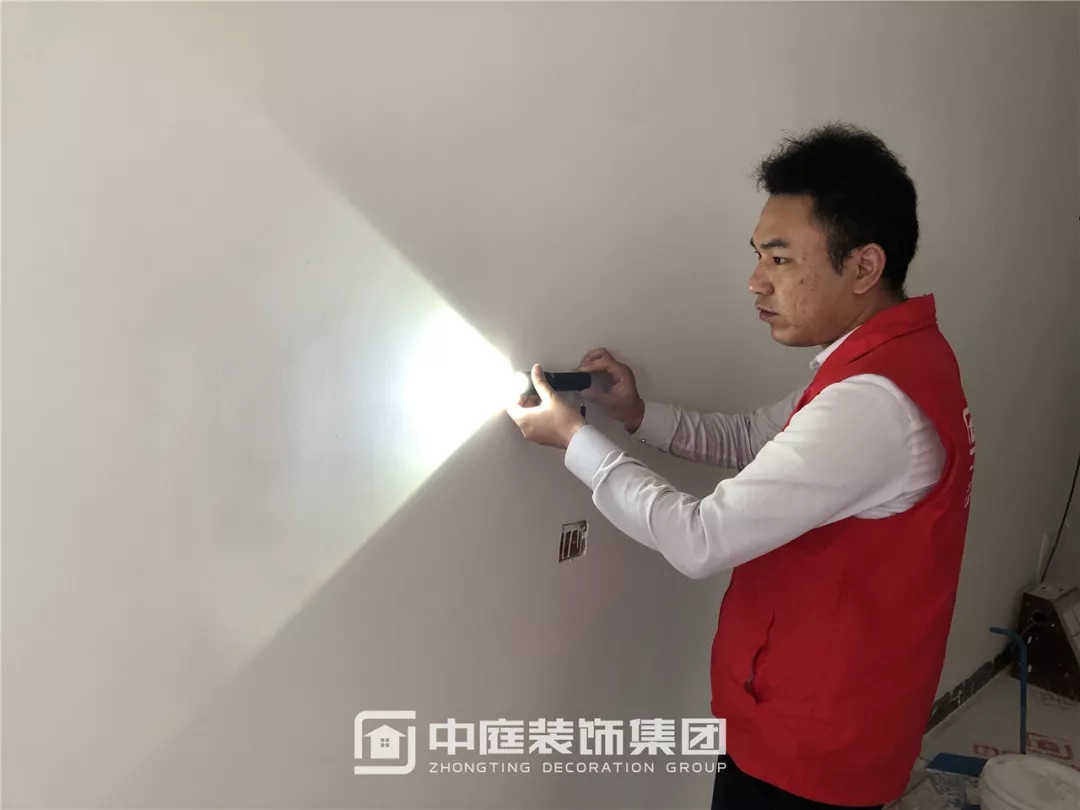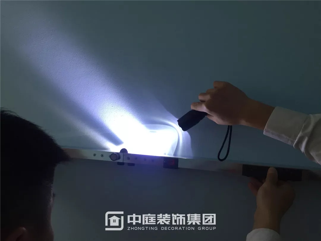 使用強光手電檢查墻面膩子施工是否達標