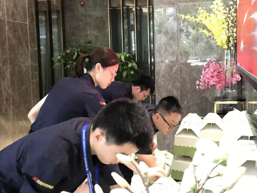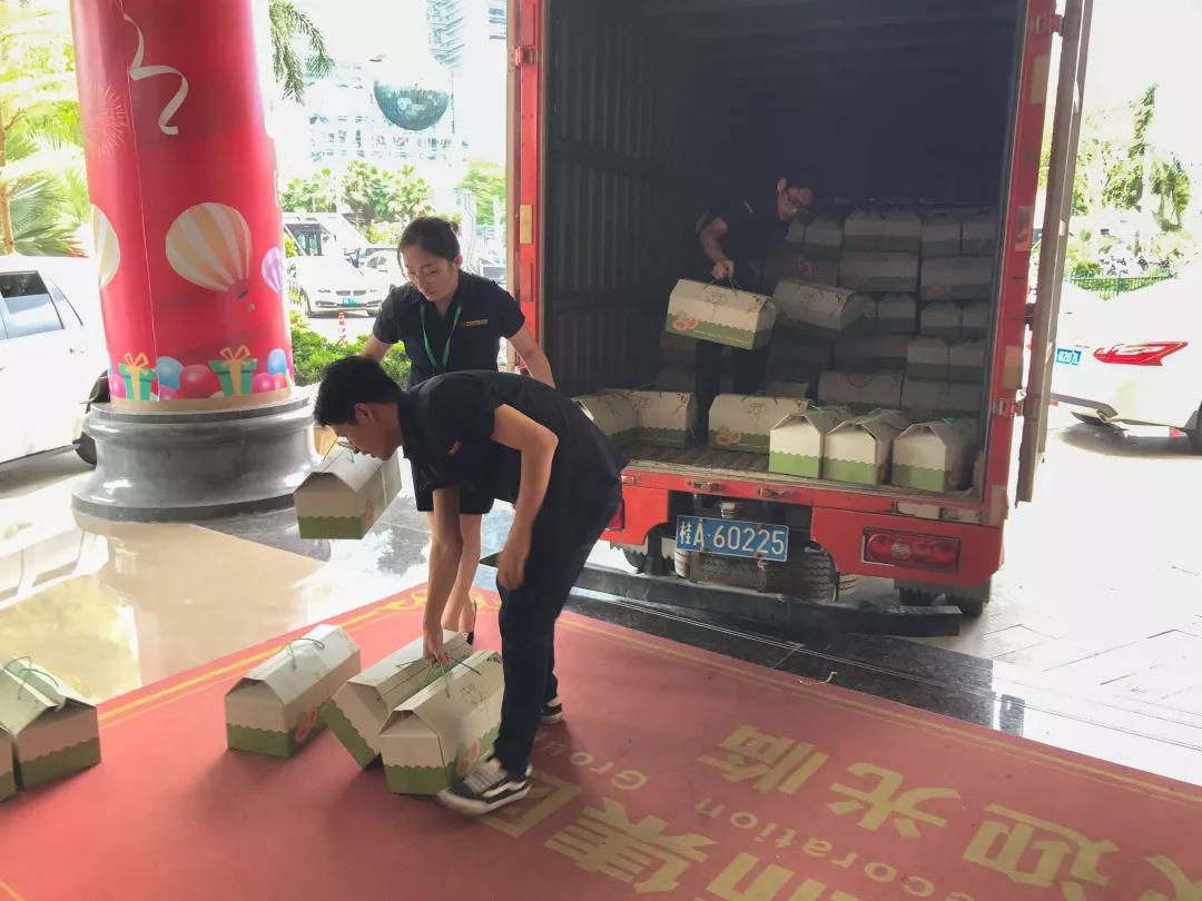 中午時候幕后工作的家人就已經中秋禮盒擺放在一樓大廳。