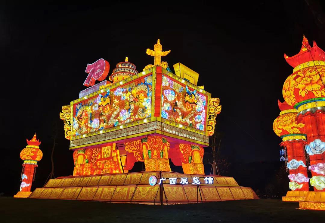 燈展切合新中國成立70周年的主題,結(jié)合廣西本土民族元素,目光所到之處,每個畫面都令人震撼。