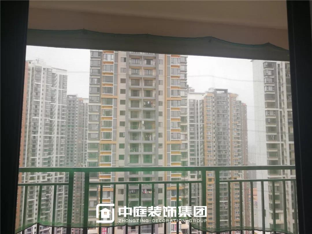 防護掛網(wǎng)懸掛到位。綠色防護掛網(wǎng),醒目的顏色為工人的施工安全保駕護航。細(xì)密的掛網(wǎng)也避免了在陽臺切割瓷磚時造成大量的灰塵飄逸出去,保護小區(qū)環(huán)境。