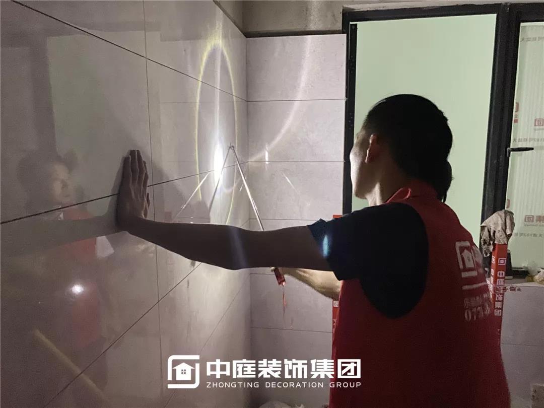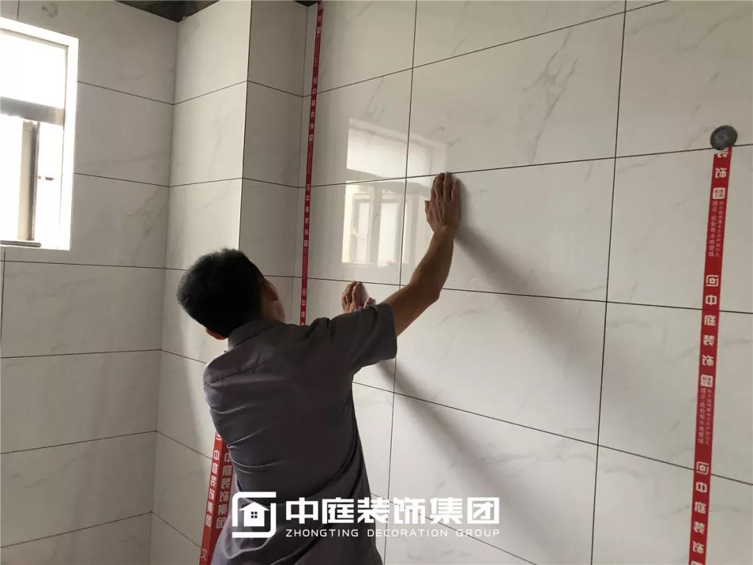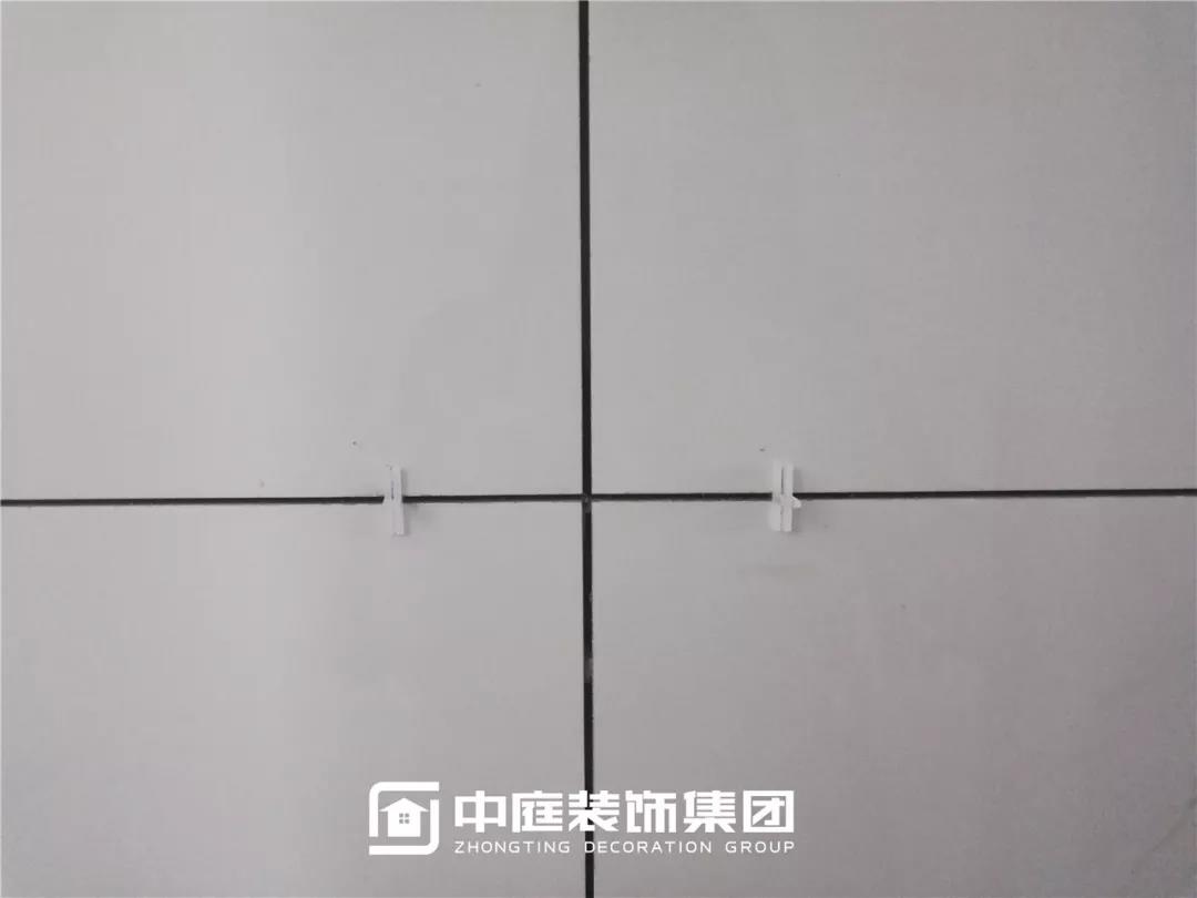 十字卡扣留縫鋪貼,對縫整齊。(瓷磚留縫可防止瓷磚在熱脹冷縮中出現(xiàn)起鼓、開裂、翹邊等情況。)