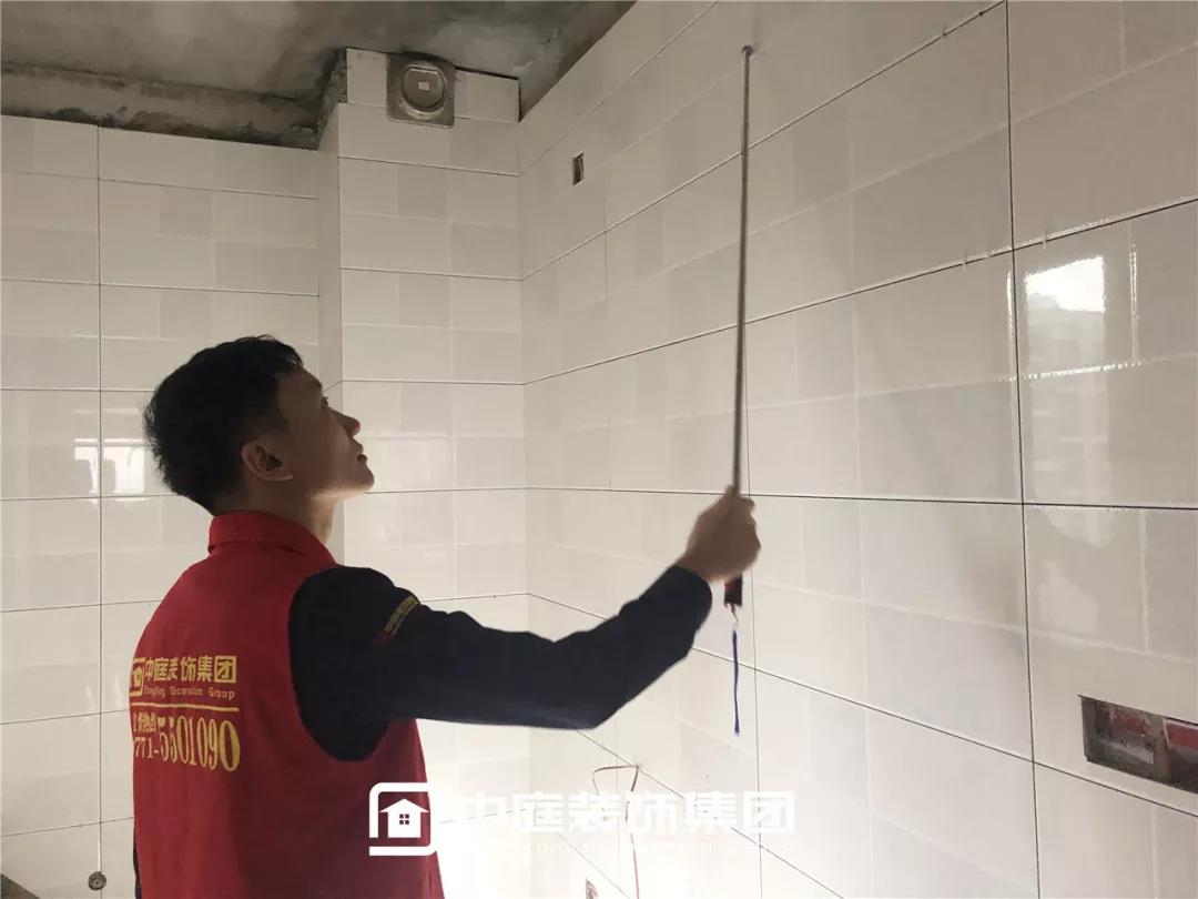 檢查瓷磚鋪貼是否平整干凈,有無錯貼漏貼;以及鋪貼縫隙是否均勻,有無缺角、裂紋。