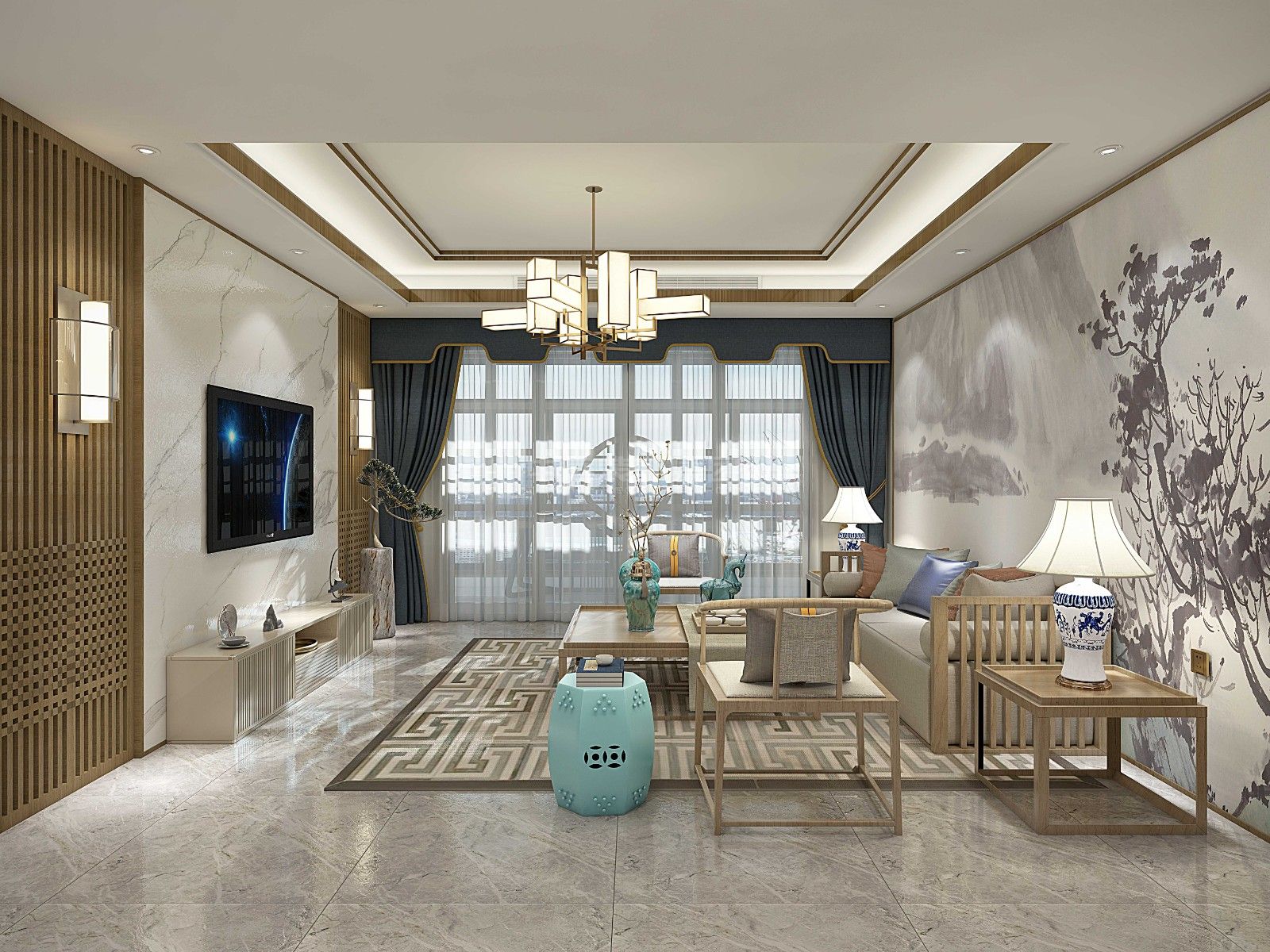 寶能城120m²新中式風(fēng)格案例