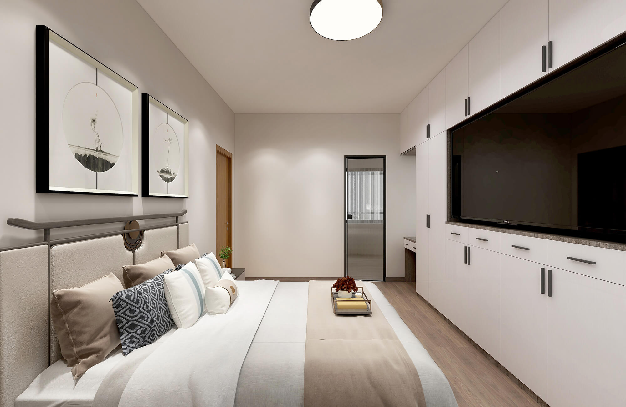 本案戶型為5房2廳2衛(wèi),總面積125㎡。本案業(yè)主喜歡有文化沉淀感的中式風格,又喜歡富有現(xiàn)代感的簡約風格,因此最終定為現(xiàn)代新中式風格。古典風格與現(xiàn)代元素的激情碰撞,讓空間簡潔素雅大氣。