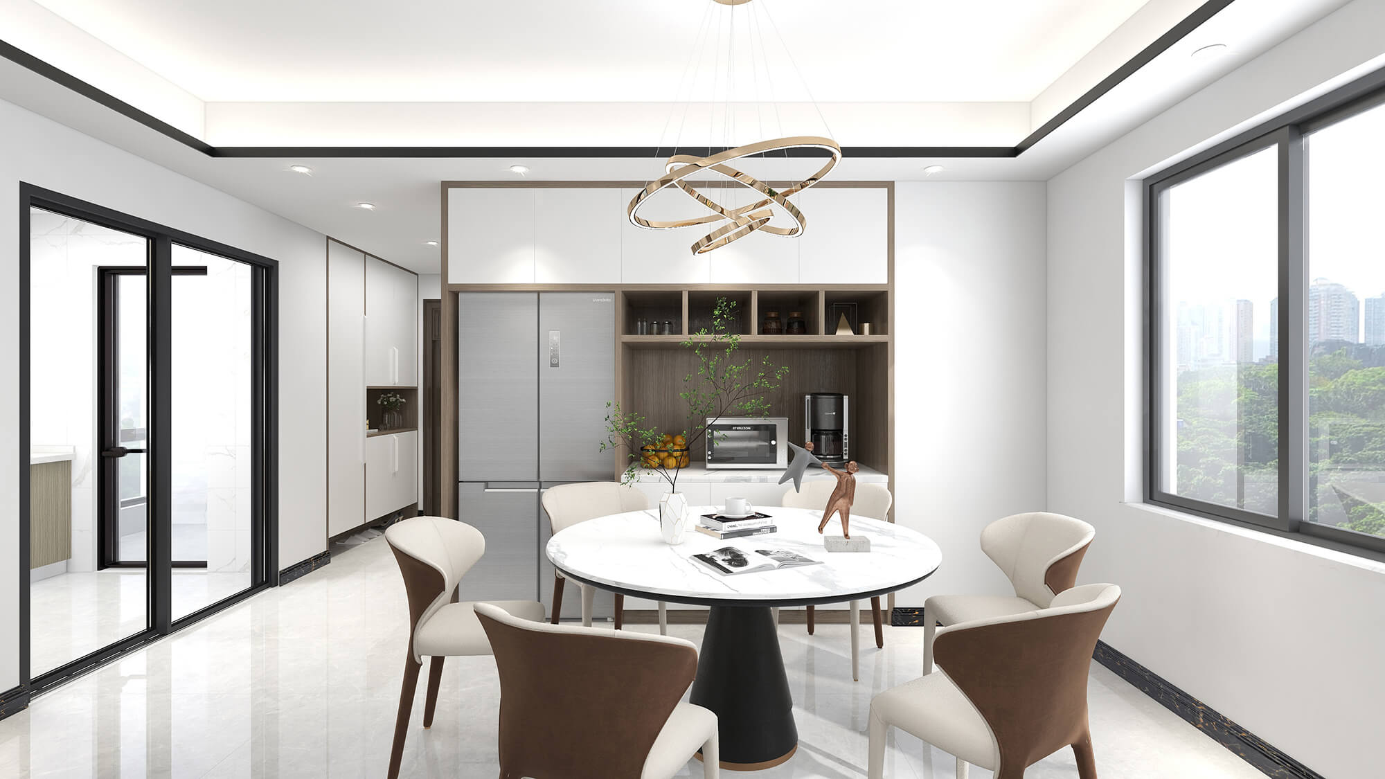 此案例為131㎡的現(xiàn)代簡約風(fēng)格,設(shè)計(jì)師充分考慮了內(nèi)外環(huán)境的關(guān)系,引景入室,引光入室,寬敞明朗的平面在開闊的落地窗的加持下,延伸出美妙的生活場景體驗(yàn)。